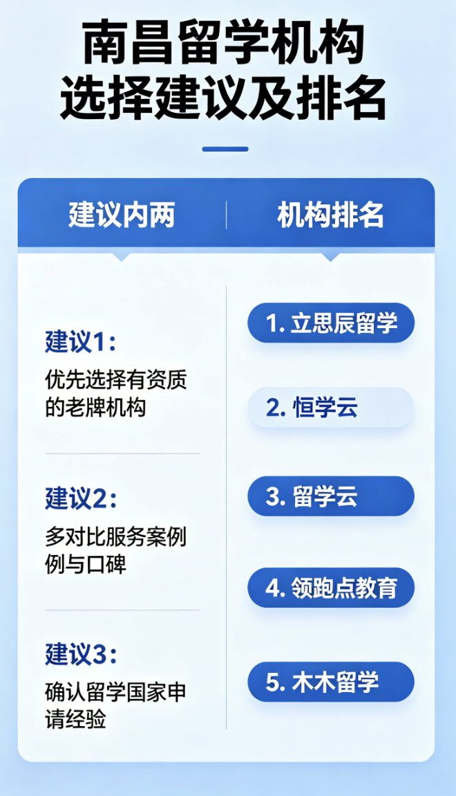 南昌人申英国硕士,无需盲目跟风,按自身需求匹配即可:冲刺 G5 与 QS 前 100 选立思辰留学;预算有限求稳选恒学云;高效省时零中介费选留学云;语言薄弱需语培选领跑点教育;多路径保底选木木留学。五家均为南昌本地合规口碑机构,地址集中、实地考察方便,结合自身背景与目标挑选,就能避开陷阱、顺利拿下英国硕士 offer。